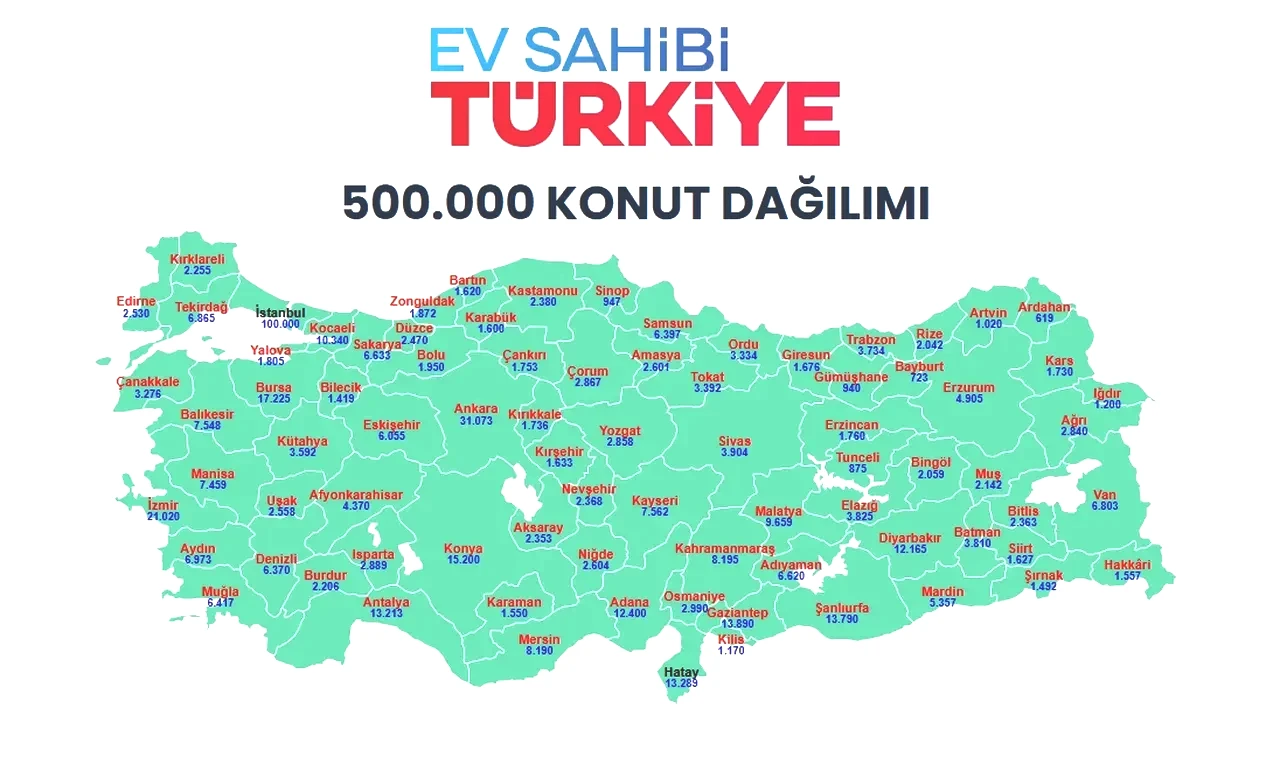 TOKİ'nin 500 bin sosyal konut uygulamasıyla ilgili olarak Çevre, Şehircilik ve İklim Değişikliği Bakanı Murat Kurum tarafından yapılan açıklamalara göre, 2-8 Mart tarihleri arasında Ankara, Muğla, İzmir ve Hatay'da kura çekimleri düzenlenecek. Kura süreci sonrasında Ankara'da 31 bin 73, İzmir'de 21 bin 20, Hatay'da 13 bin 289 ve Muğla'da 6 bin 417 konutun sahipleri belirlenecek.